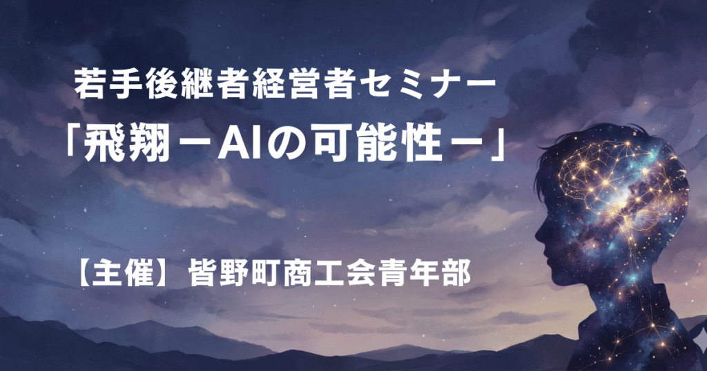 株式会社MAREMI(埼玉県秩父郡皆野町)代表の吉岡健太朗が、皆野町商工会青年部(埼玉県秩父郡皆野町)主催の若手後継者経営者セミナー「飛翔−AIの可能性−」に講師として登壇いたします。人手不足やコスト高騰に悩む事業者の方や2026年に向けた後継者のアップデートしたい方向けのセミナーです。
